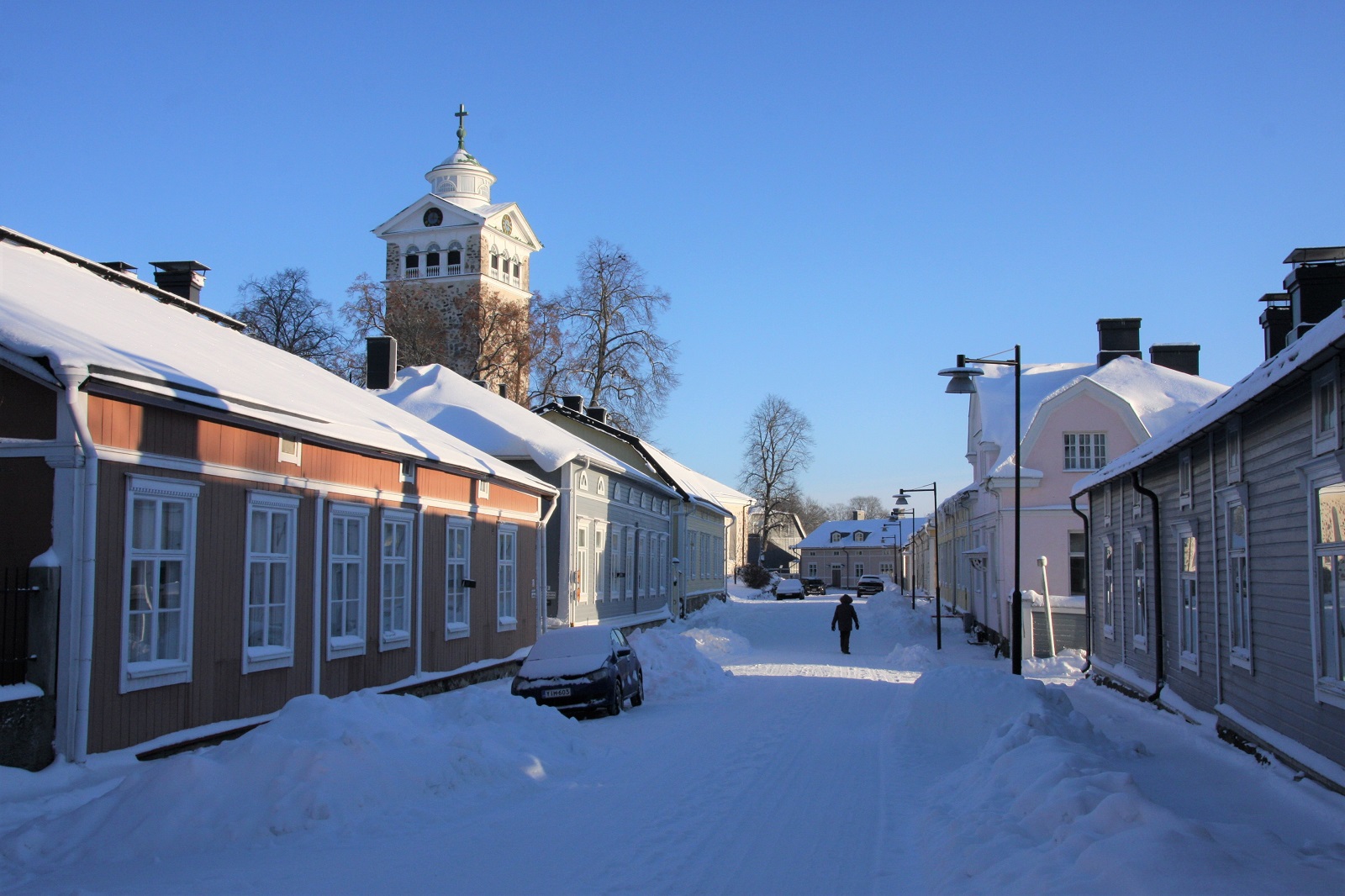 Tulee ikävä sitä, kun katulyhdyt syttyvät ja niiden valossa pienet lumihiutaleet leijailevat kutittamaan nenää. Kun on muuten aivan hiirenhiljaista, mutta kengän alla narskuu pakkashanki. Kun saa iltalenkillä unohtua omiin ajatuksiinsa kohtaamatta ketään tai mitään ja sulautua osaksi vanhaakaupunkia – sen menneisyyttä ja nykyisyyttä. Sellaisina hetkinä en kaipaa ympärilleni kesän iloa, valoa tai hyörinää.